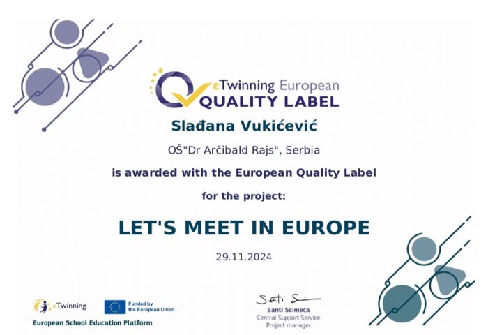 Прошле године је наставница српског језика и књижевности, Слађана Вукићевић и ученици одељења садашњег 6/1 и 7/1 реализовали европски етвининг пројекат „Let’s meet in Europe“. Више од 80 школа је учествовало, из осамнаест држава. У септембру су добили Националну ознаку за квалитет, данас и Европску ознаку за квалитетан рад на пројекат. На најбољи начин су […]