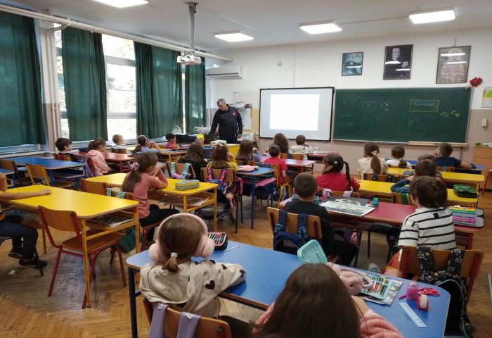 Ученици првог разреда су имали предавање ватрогасца спасиоца на тему „Безбедност деце у ванредним ситуацијама“. Кроз презентацију, видео и аудио материјал, али и кроз предавање едукатора ученици су добили важне информације о понашању у случају пожара, поплава и земљотреса.