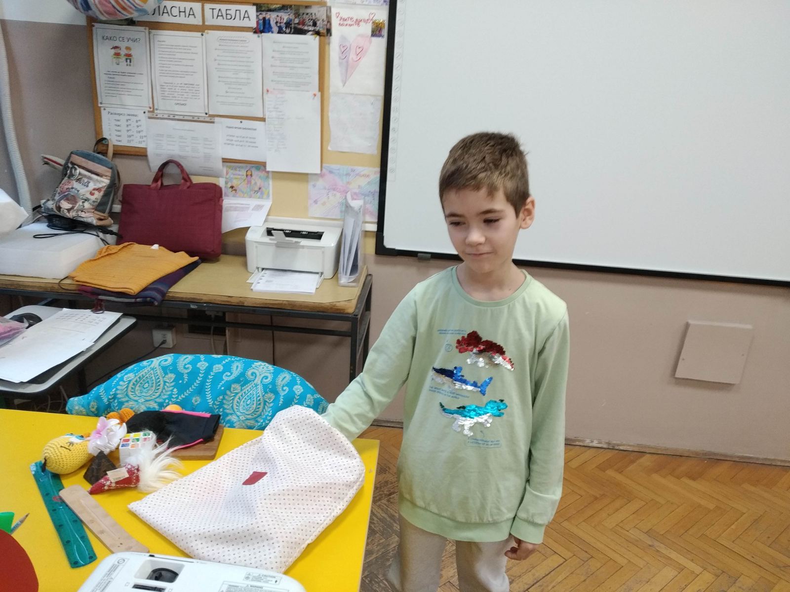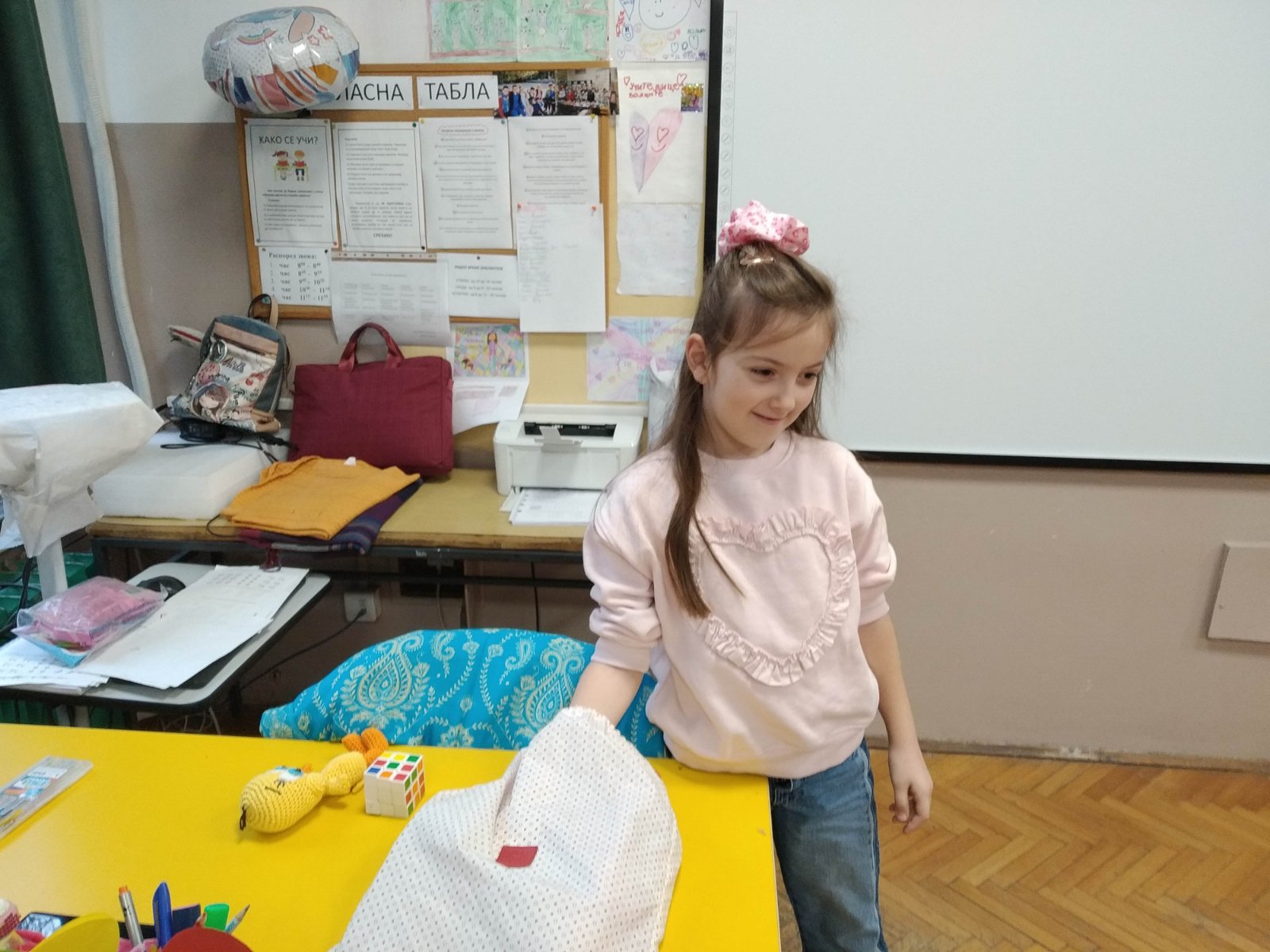 Истраживали смо својства материјала на занимљив начин. Наиме у џакчићу су били предмети од различитих материјала. Свако од ученика је требало да опипа материјал, да на основу тога каже својства тог материјала, а затим и да покуша да погоди предмет. Забавили смо се и учили!